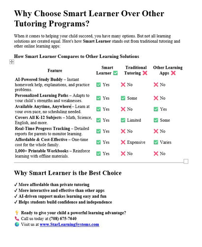 No more rushing to tutoring centers. With the Smart Learner Annual Package, your child gets engaging, effective learning from Kindergarten through 12th Grade – all in the comfort of your home.
